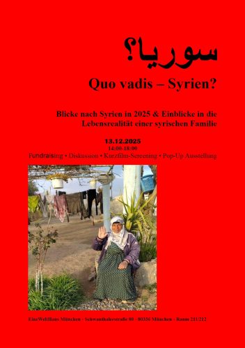 Wie geht es weiter mit Syrien – politisch, gesellschaftlich und menschlich? Mehr als ein Jahrzehnt nach Beginn des Konflikts bleibt das Land geprägt von Unsicherheit, wirtschaftlicher und humanitärer Not sowie tiefgreifenden sozialen Herausforderungen. Dennoch blickt die Weltöffentlichkeit wieder in Richtung Syrien nach der politischen »Ära Assad«; wo nun Geschichten von Widerstandskraft und fragiler Hoffnung keimen. Die Veranstaltung wagt einen neuen Blick nach Syrien sowie einen intimen, tiefen Einblick in die Lebensrealität einer syrischen Familie derzeit im Dezember 2025, die stellvertretend für viele syrische Schicksale steht.